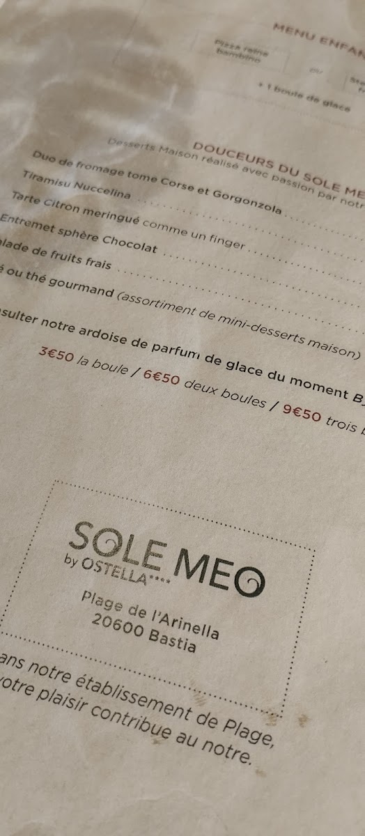 Introducing the menu of Sole Meo, a hidden gem located on Rte de l'Arinella in Bastia, France. This beachfront restaurant brings a delightful blend of culinary fusion with a focus on fresh ingredients. Patrons rave about the delicious food and generous portion sizes, complemented by incredibly refreshing mocktails, such as the beloved Ginas.